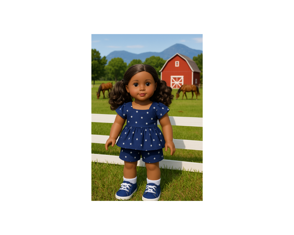 Navy Blue with White Star Cotton Fabric: This fabric features a navy-blue background adorned with white star patterns. It’s perfect for creating patriotic or celestial-themed doll outfits.