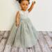 Shimmering silver satin captures the glow of moonlight, while soft layers of tulle float like a dream. Tiny faux rhinestones sparkle with secrets only a fairy godmother could tell. A hook-and-loop closure makes dressing up easy, so the magic never misses a beat.