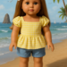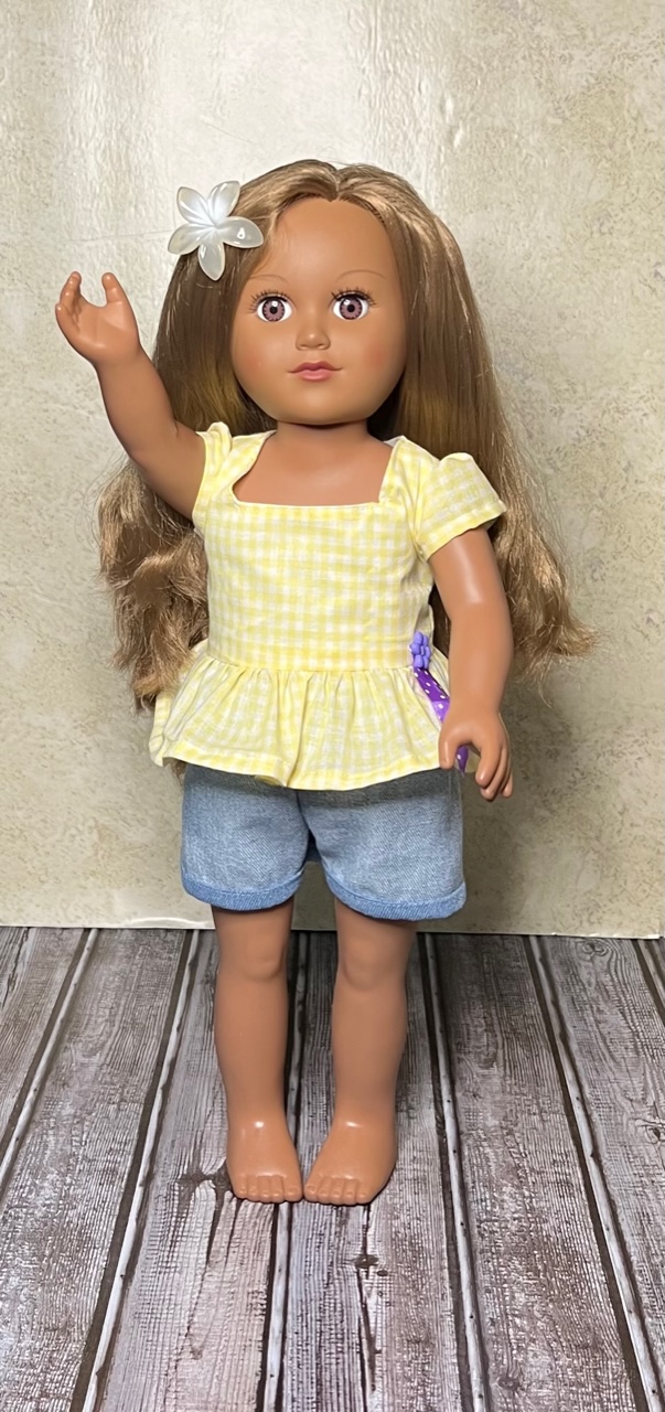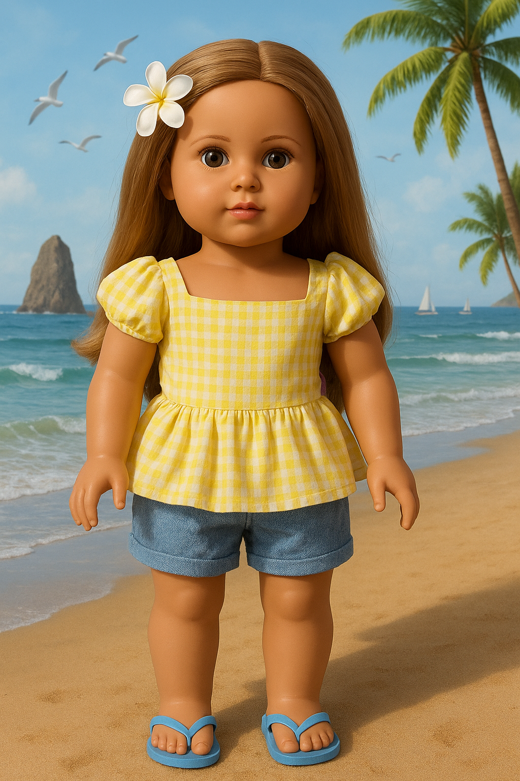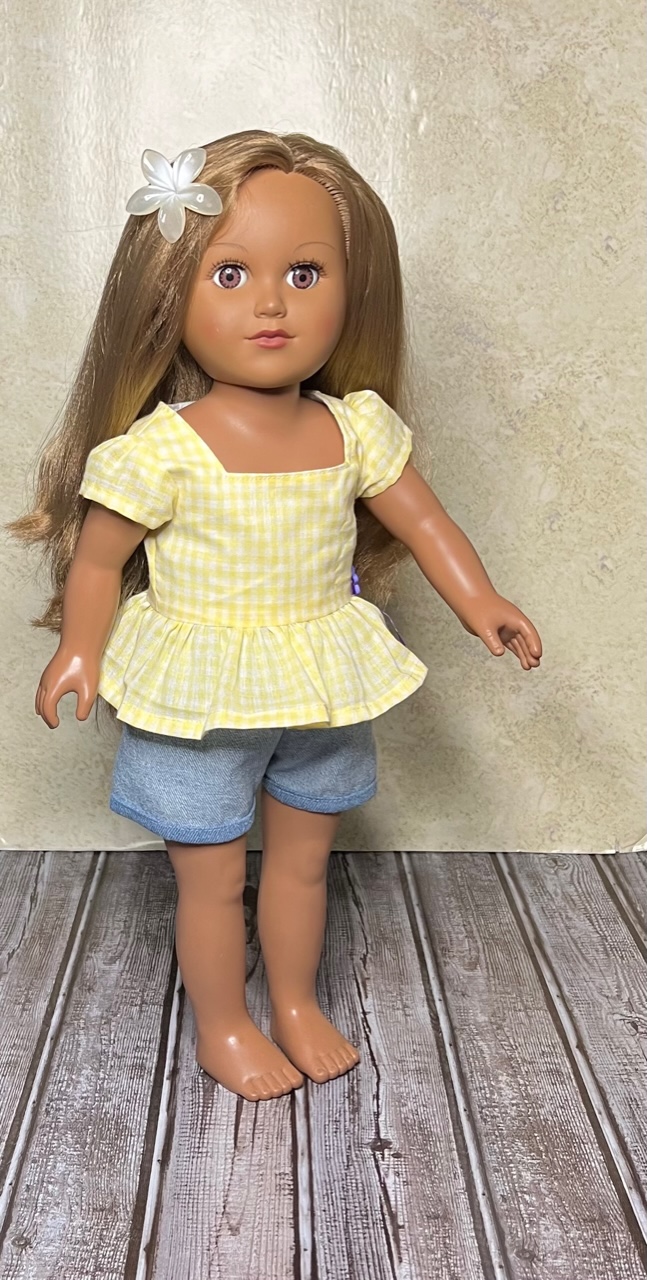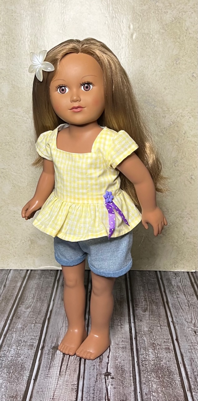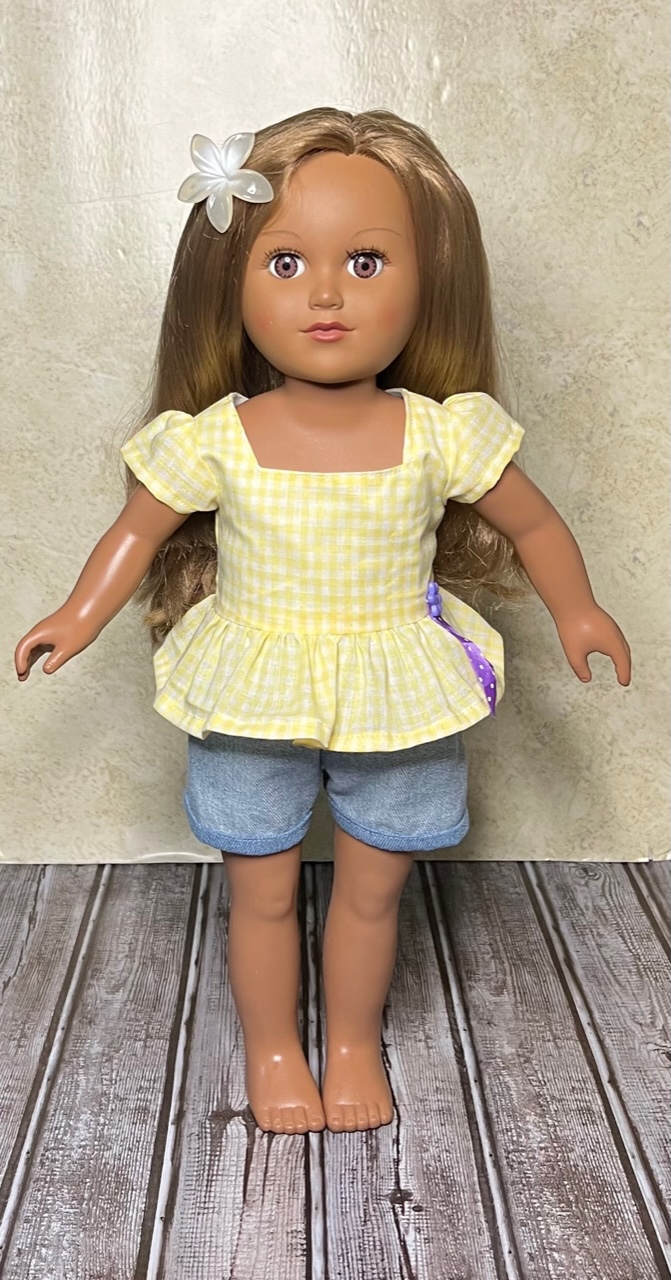 Bring a little sunshine to playtime with this cheerful yellow gingham top and denim short set—handmade with love (and a whole lot of style). The cotton fabric feels soft and crisp, and the easy hook-and-loop closure in the back makes outfit changes a breeze—perfect for little hands or grown-up collectors.