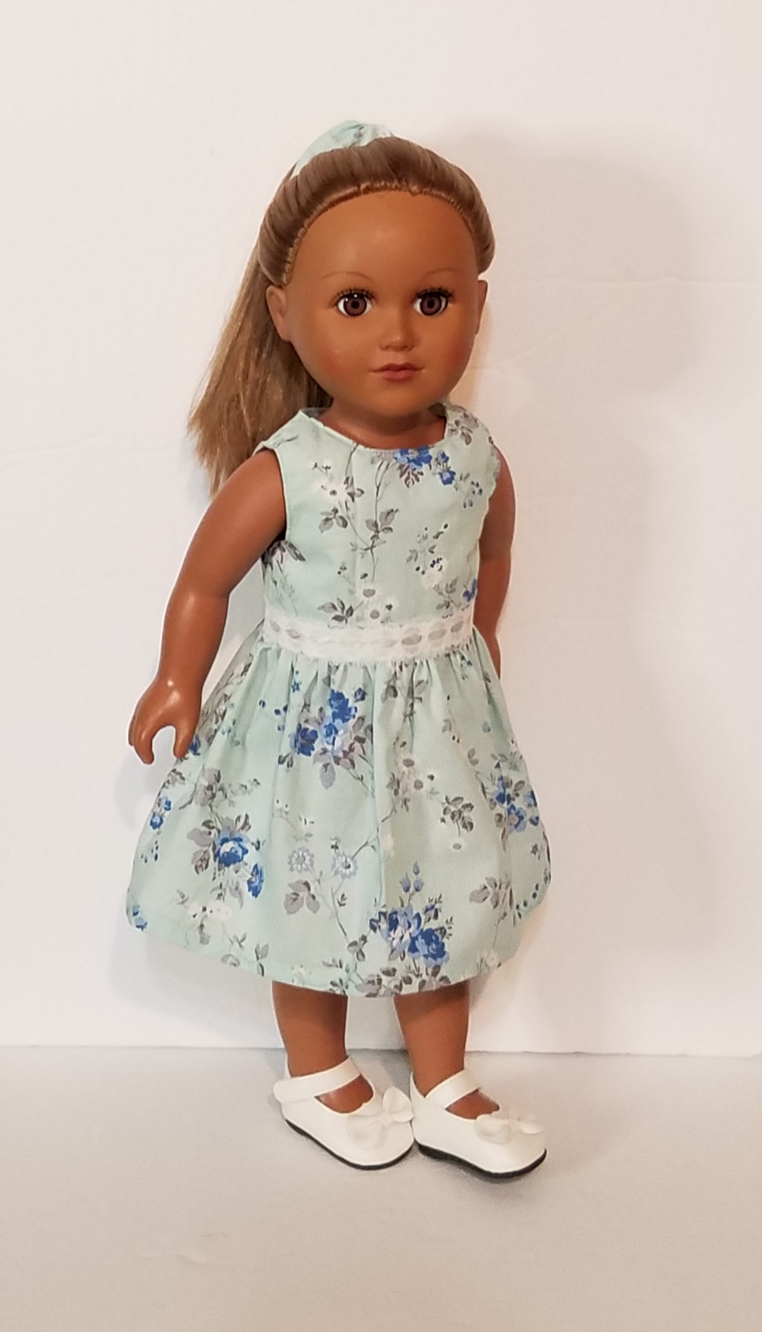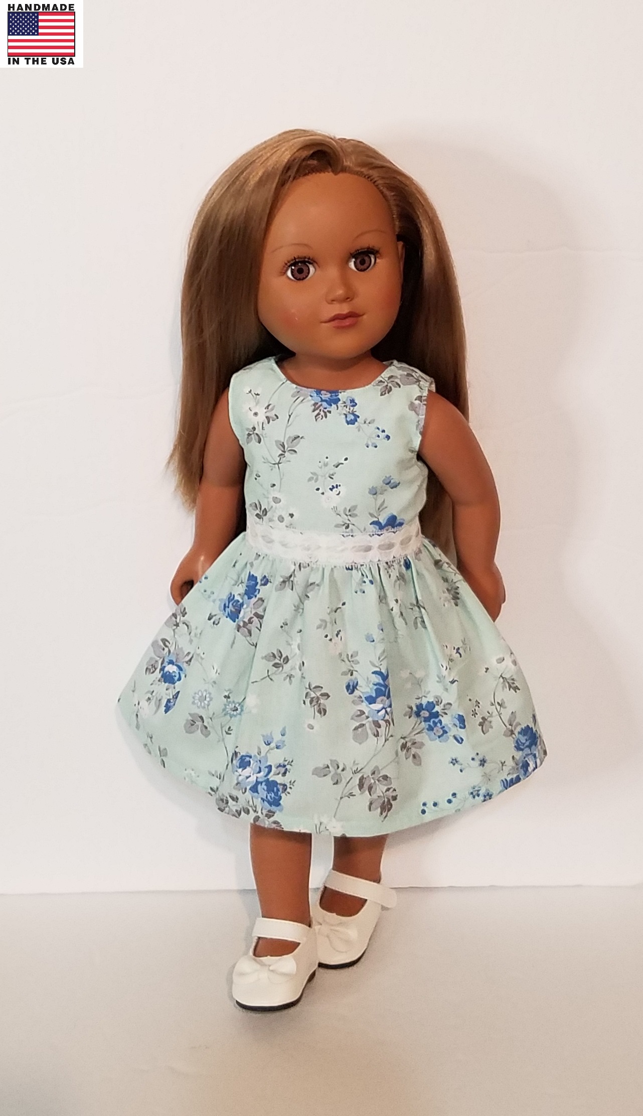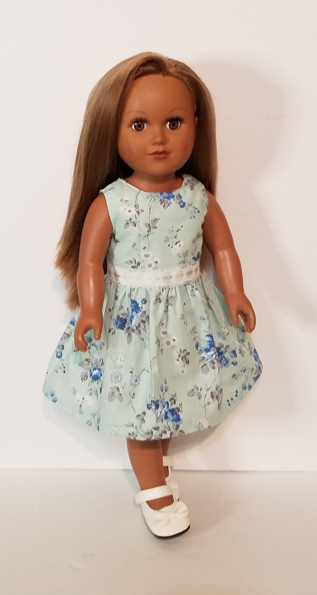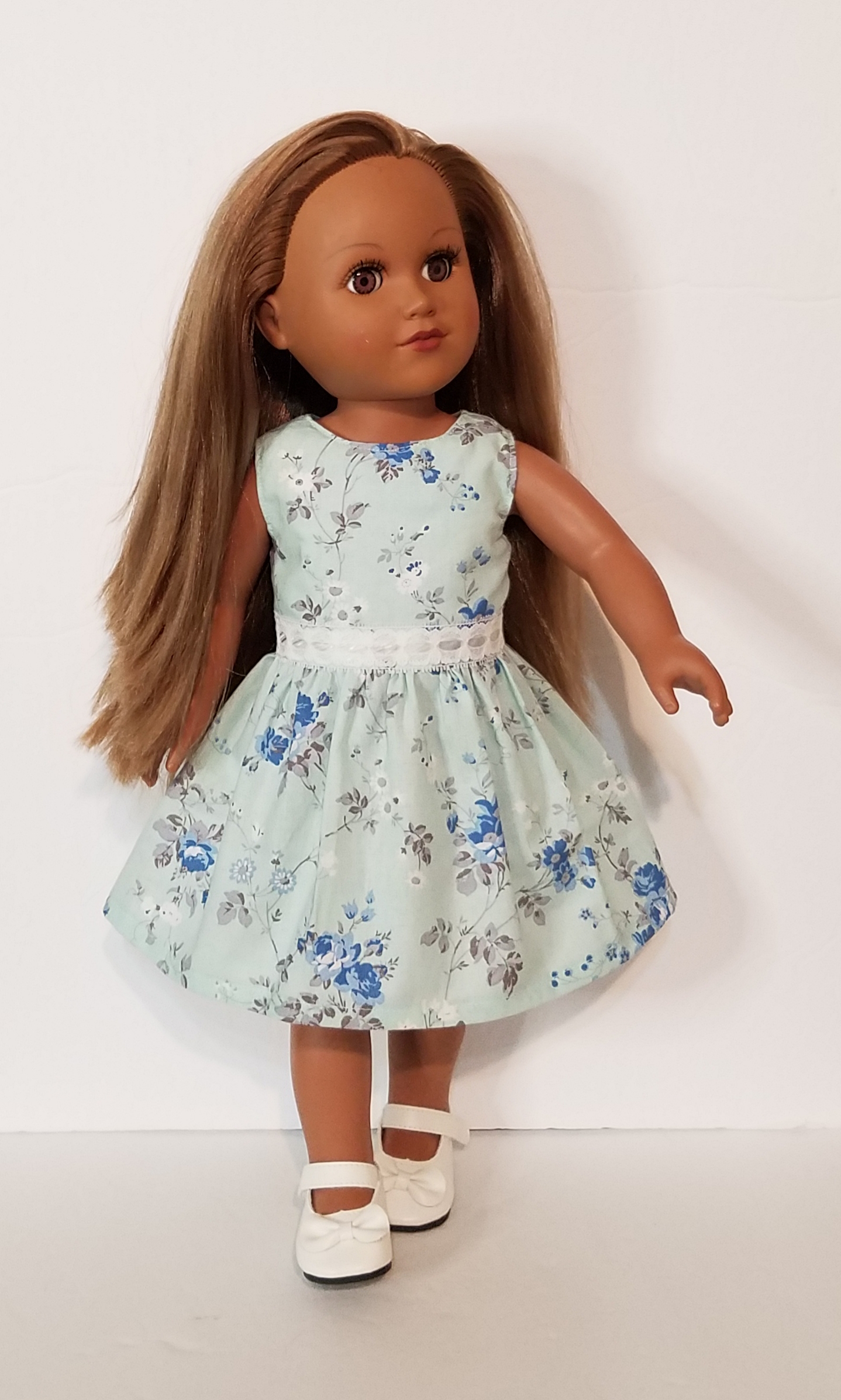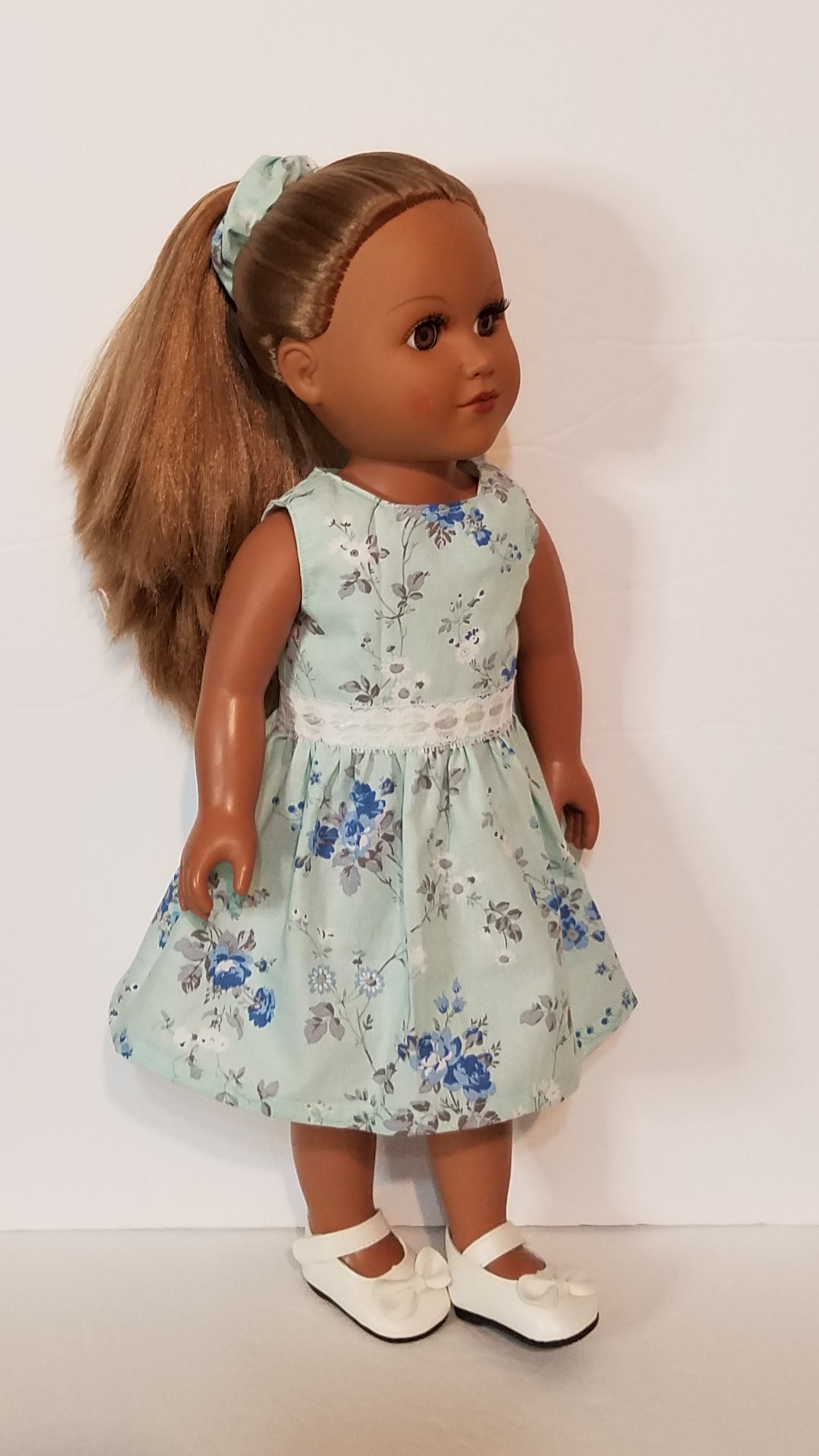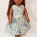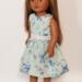 Let your doll soak up the sunshine in this cheerful summer dress, sprinkled with soft light-blue florals and trimmed in dainty white lace for just the right touch of charm. Each one is handmade with care from premium cotton—light, breathable, and perfect for warm-weather adventures, from backyard tea parties to garden strolls through the dollhouse.