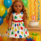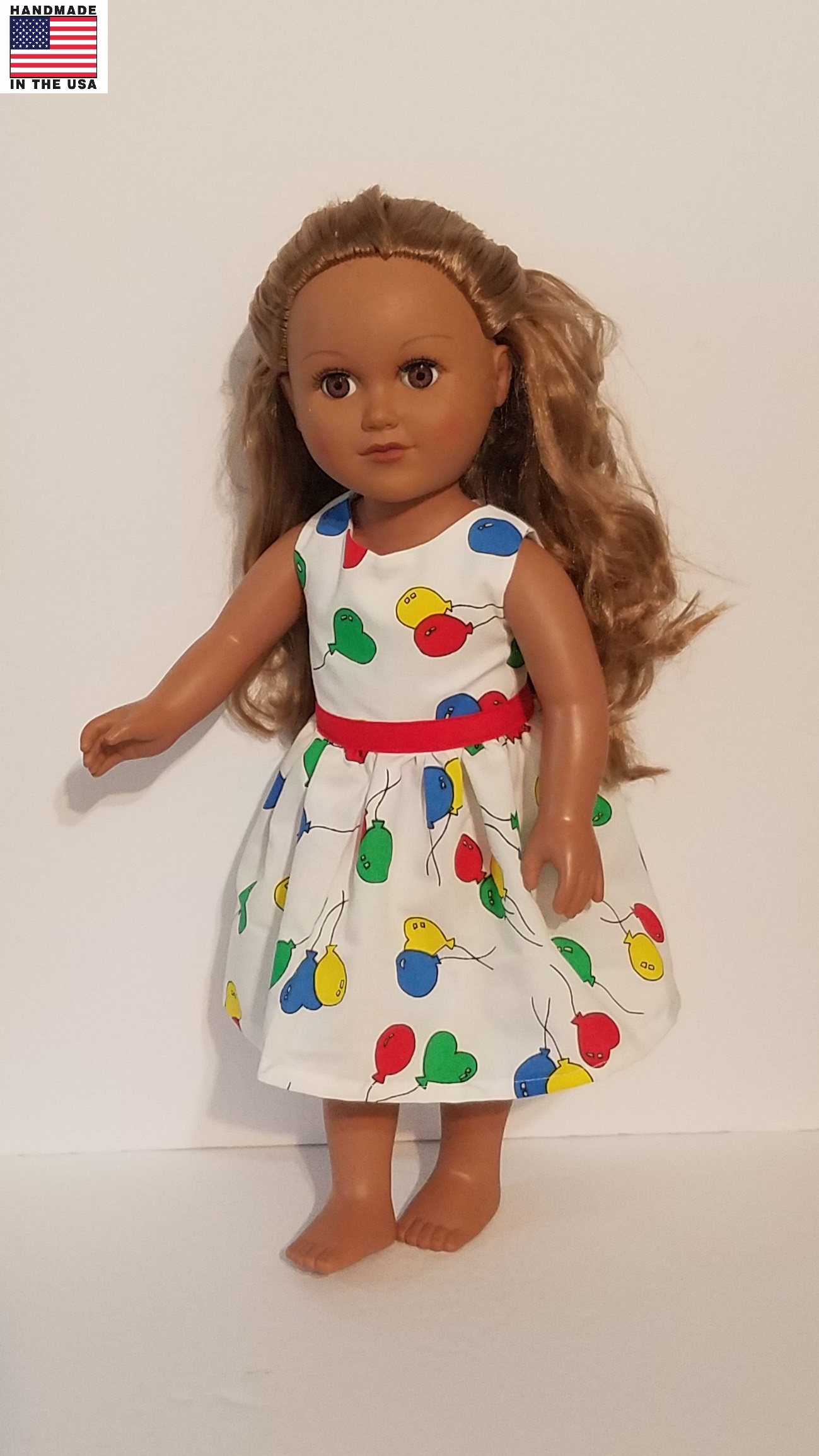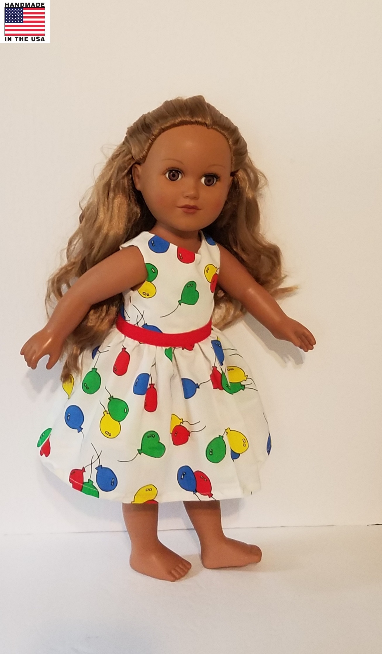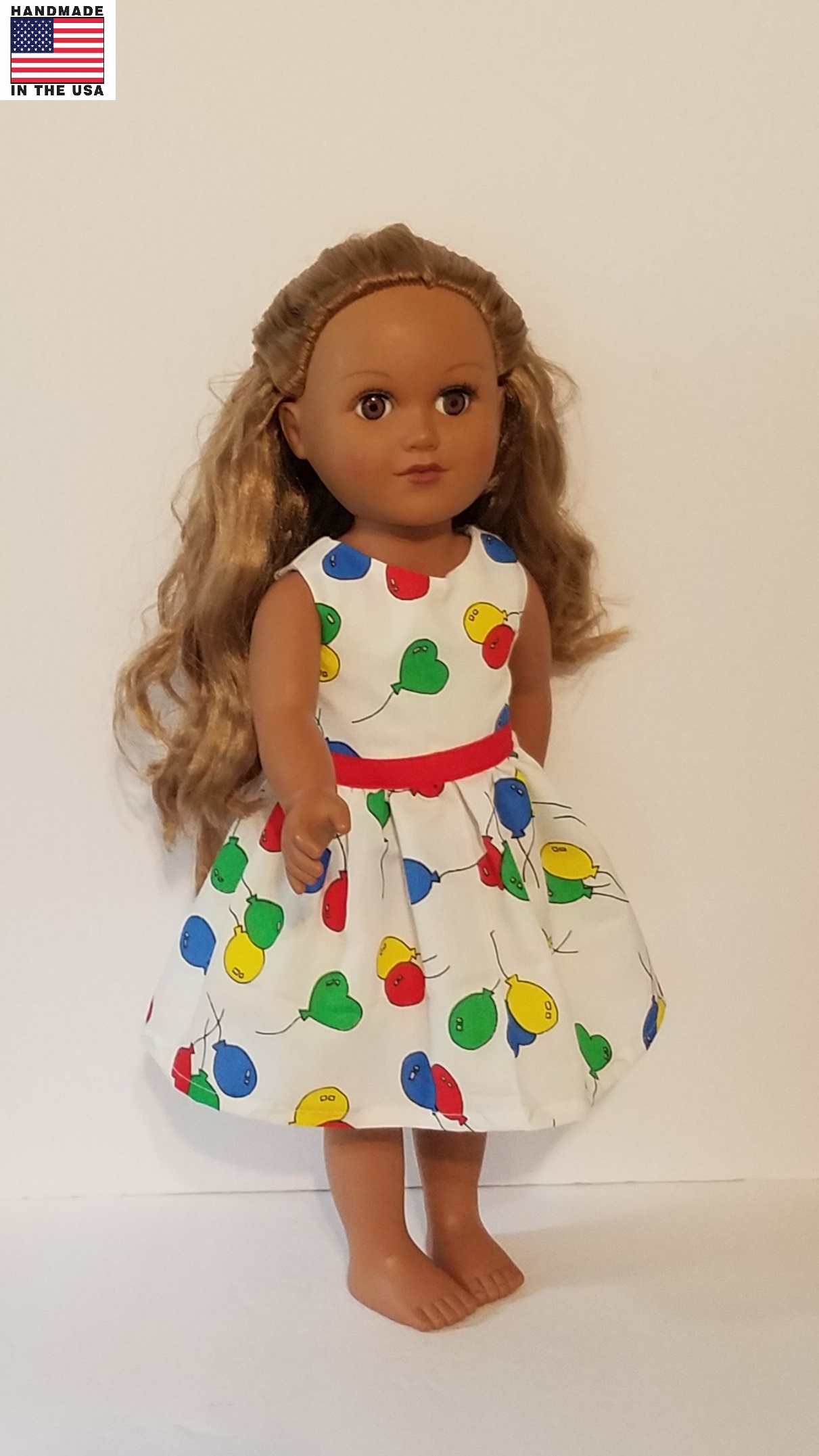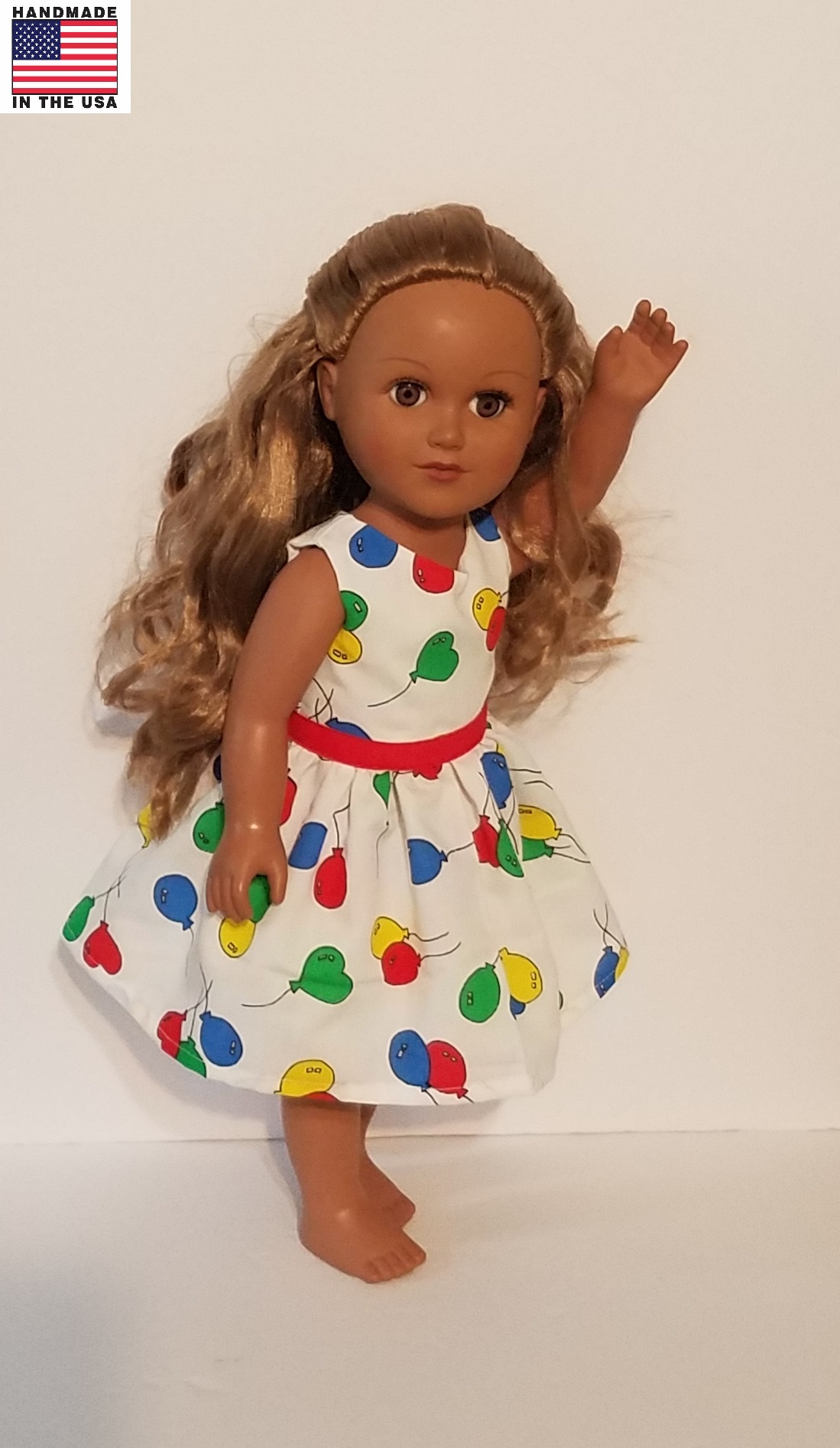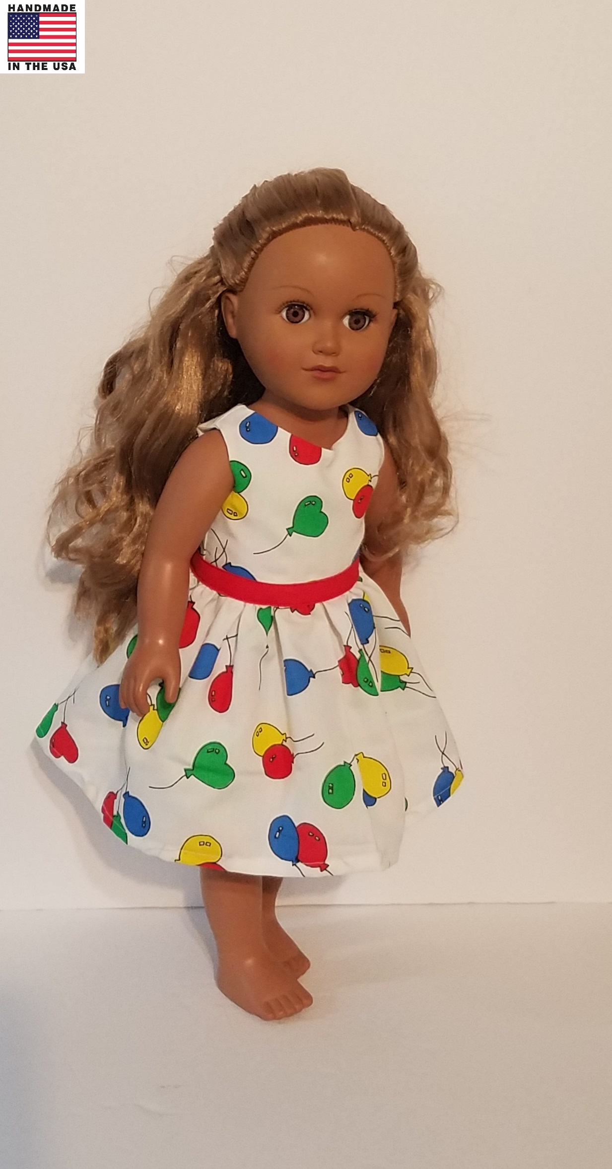 This delightful doll dress features vibrant Happy Birthday balloons, perfect for any special occasion. Here are the details: