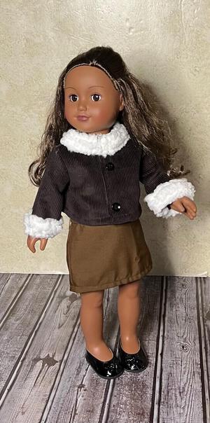 18in Doll Jacket Coat Brown Corduroy with White Sherpa