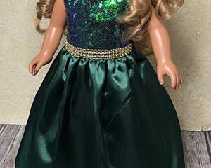 18in Quinceanera Emerald Satin /Tulle Doll Gown With Rhinestone.