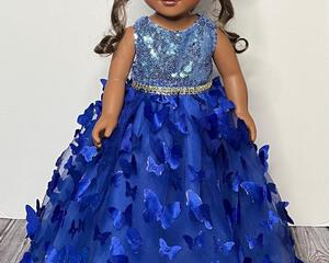 18in Quinceanera Blue Sequin And 3D Butterfly Tulle Doll Dress