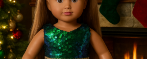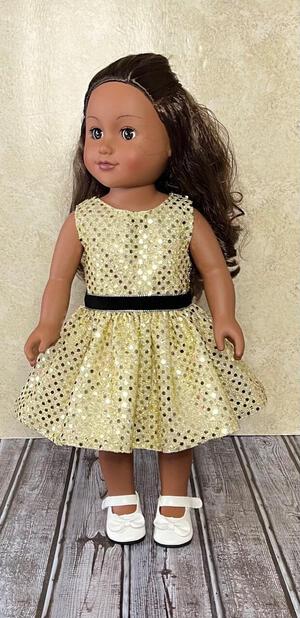 18in Green Iridescent Sequin Doll Dress With Black Underskirt