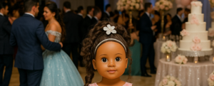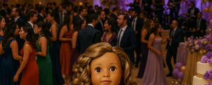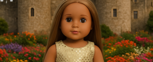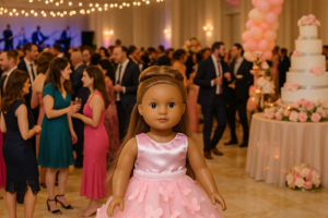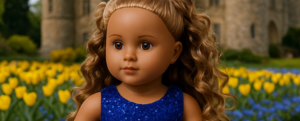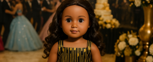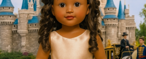 18in Quinceañera Champagne Satin And Tulle Doll Gown.