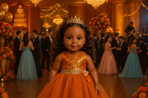 Quinceañera Orange Sequin and Tulle Doll Ball Gown Handmade F...