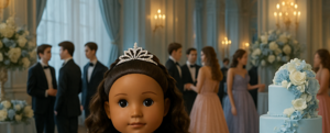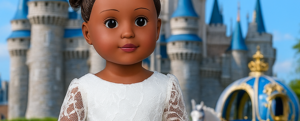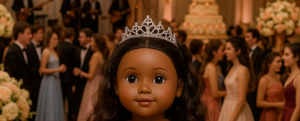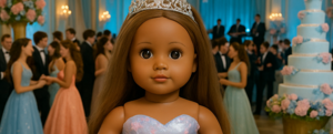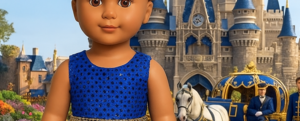 18in Doll Navy Blue with Off white Lace Overlay Princess Ball...