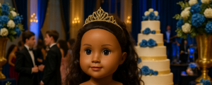 18in Quinceañera Navy Blue Sequin And Gold Doll Gown Handcraf...