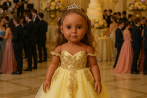 18in Quinceanera Princess Gold Satin and Tulle Doll Gown