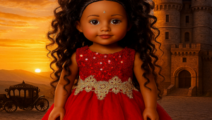 18in Quinceañera Princess Red Sequin With Gold Lace Doll Ball...