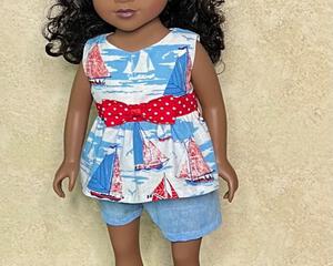 18in Sailboats Top & Light Blue Short Set Handcrafted For Ame...