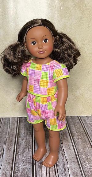 18in Handcrafted Multicolor Plaid Shorts And Top Doll Set