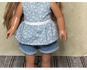 18in Patriotic Lt. Blue with White Stars Top and Denim Shorts...