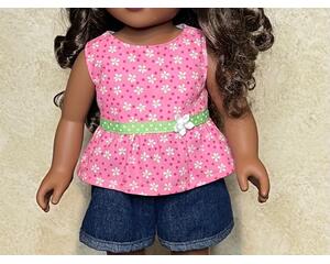 18in Pink Daisy Top And Denim Shorts Doll Set