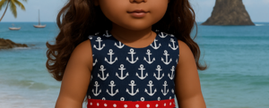 18in Doll Summer White with Blue Nautical Anchor Top With Nav...
