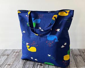 Ecofriendly Blue and Yellow Whale Tote Reversible Grocery Sho...