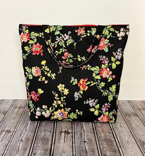 Eco-Friendly Reusable Large Black With Red Flowers Handcrafte...