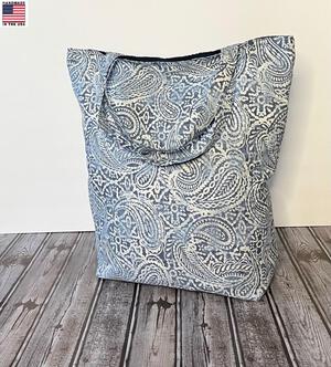Large Blue Pasley Ecofriendly Handcrafted Reusable Grocery Sh...