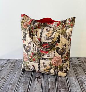 Red French Rooster Ecofriendly Reusable Grocery Shopping Bag....