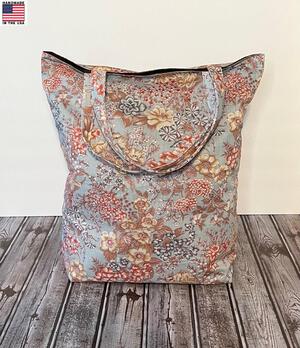 Eco-Friendly Large Blue and Brown Floral Grocery Bag with 3 P...