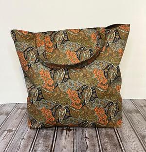 Large Brown, Orange and Black Paisley Floral Eco-Friendly Tot...