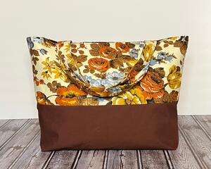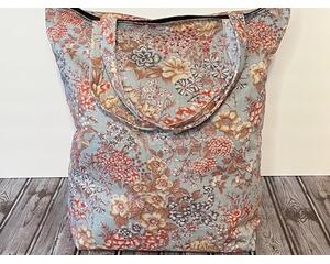 Eco-Friendly Blue and Brown Floral Grocery Bag with 3 Pockets.