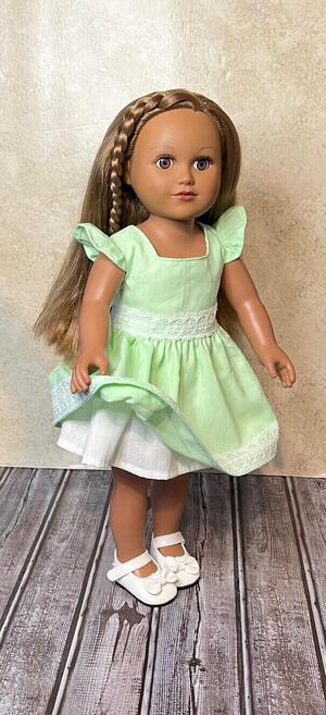 18in Lime Green Doll Dress With White Lace and Underskirt