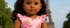 18in Quinceañera Champagne Satin And Tulle Doll Gown.